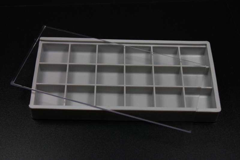 Caja clasificadora de piezas pequeñas con 18 departamentos.