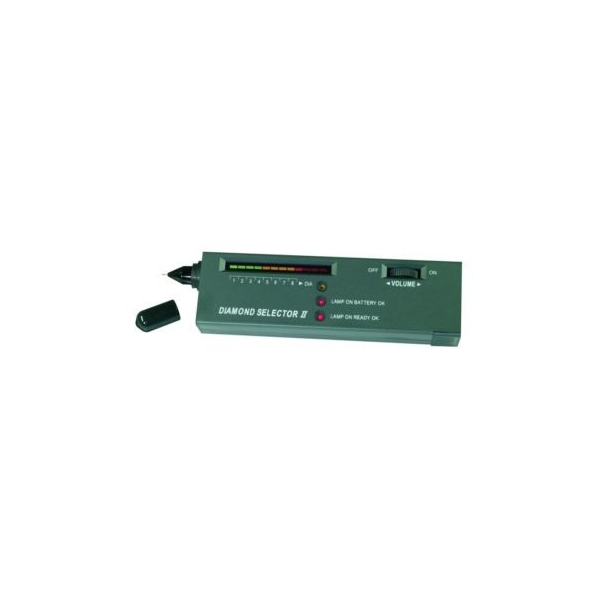 Para diferenciar rápida y exactamente entre diamantes verdaderos e imitaciones. Equipado con un panel de diodos luminiscentes así como de un indicador sonoro