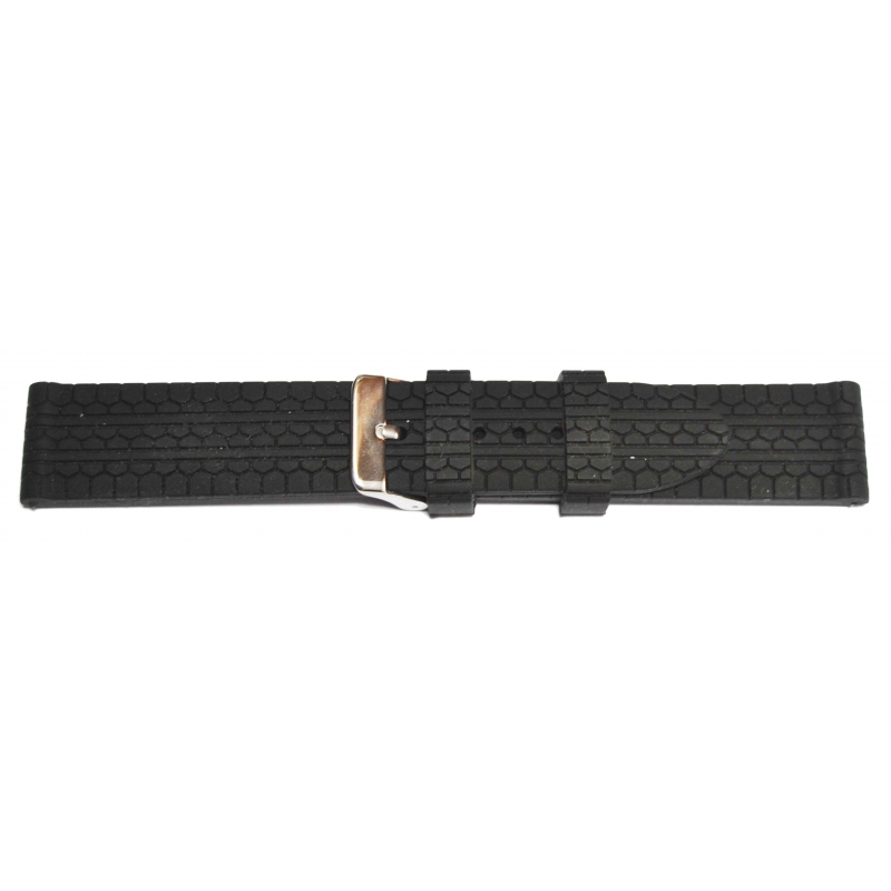 Correa de silicona negra, talla 22mm, hebilla de acero antialergico, acabado rodadura de neumático.