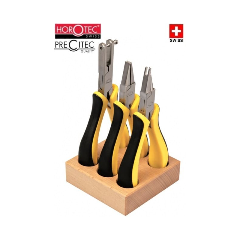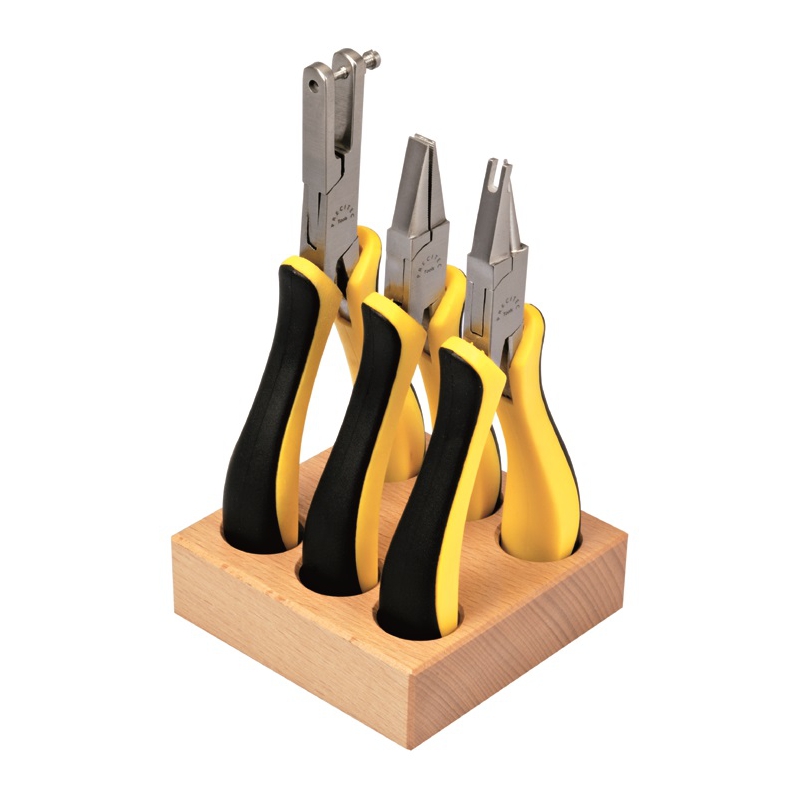 Juego de 3 alicates en zócalo de madera que contiene :