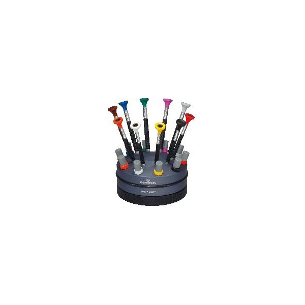 Surtido de 10 destornilladores sobre zócalo giratorio.