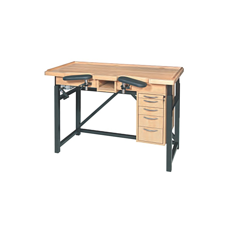 Mesa de trabajo en madera de primera calidad muy estable, bien adaptada al taller de relojería de hoy.