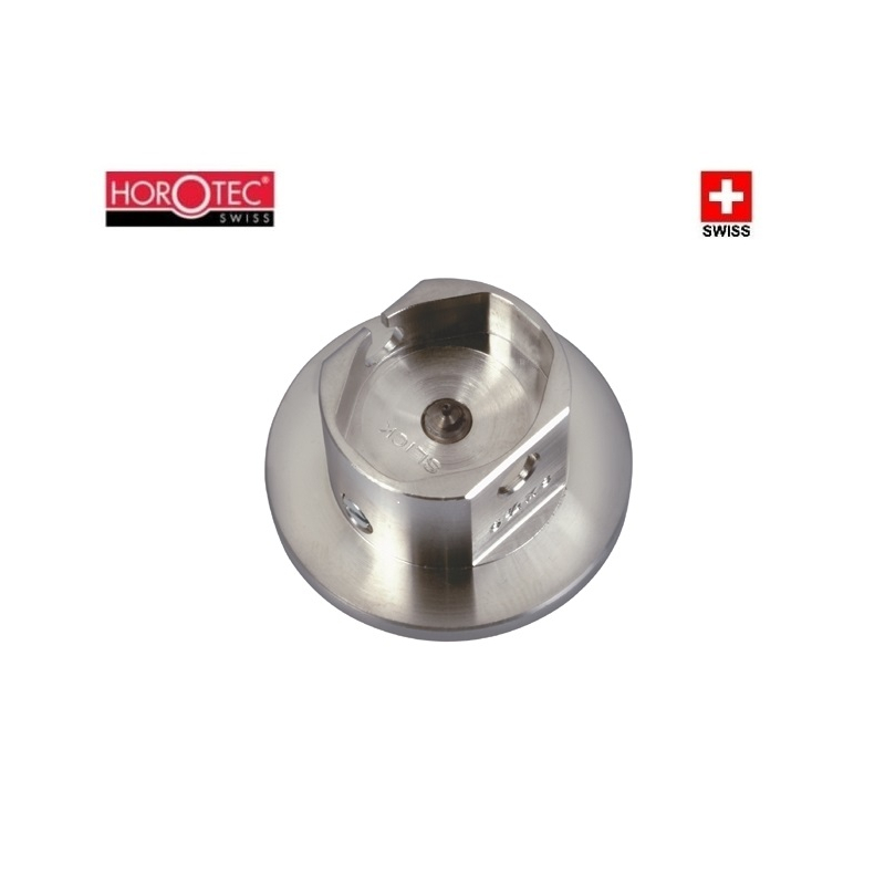 Porta-movimientos de latón niquelado diseñado para sujetar firmemente la maquinaria para labores como la colocación de las agujas.