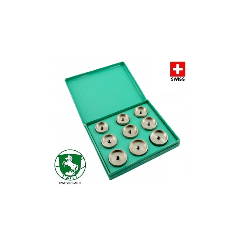 Juego de 9 tases reversibles, con cantos rectos, en latón niquelado para reloj sumergible. Ajuste de rosca.