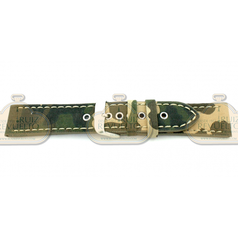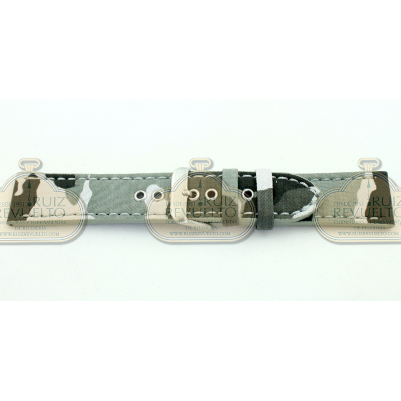 CORREA EN LONETA, TIPO CAMUFLAJE. EN MEDIDAS 22 Y 24 MM. COLORES GRIS Y MARRÓN. HEBILLA ANTIALÉRGICA