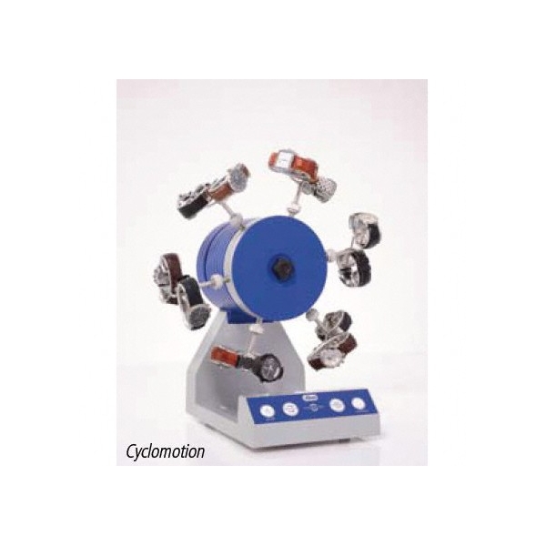 Cyclomotion es una herramienta para la regulación y mantenimiento de la cuerda de los relojes mecánicos automáticos, perfecto para las pruebas de materiales de talleres, fabricantes y relojeros profesionales. Es una versión perfeccionada del conocido Elma Cyclomat