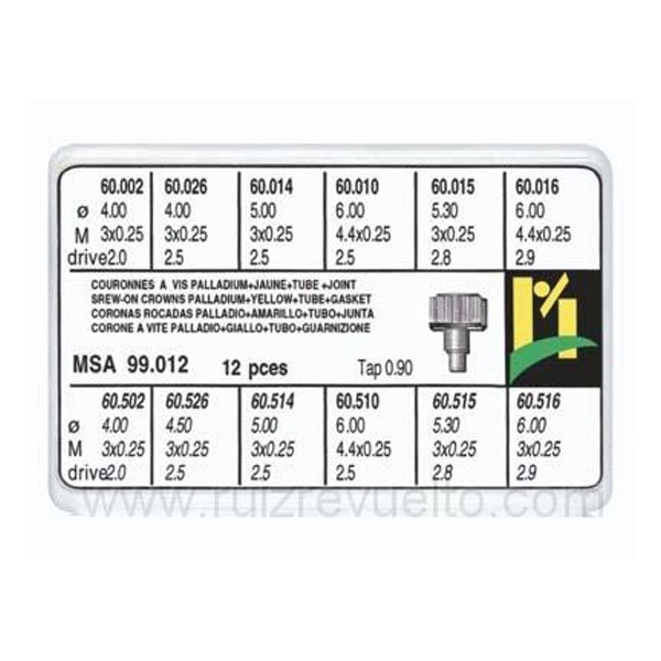 surtido 12 coronas roscadas con tubo de caja R-90 cha y pl.