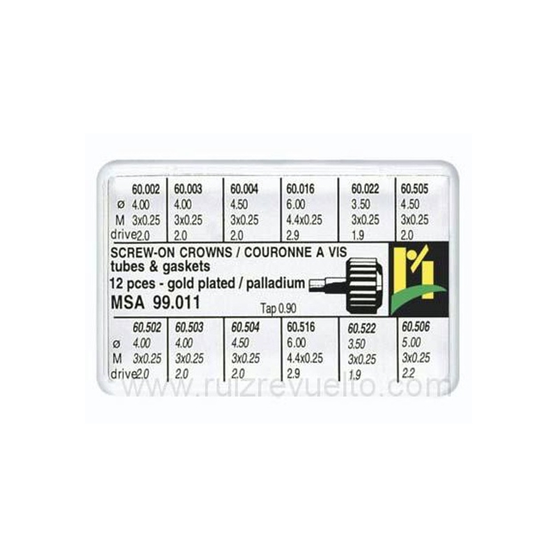 Surtido 12 coronas roscadas con tubo de caja R-90 chapadas
