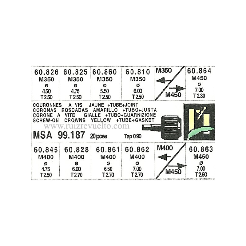 surtido 20 coronas roscadas con tubo de caja chapadas