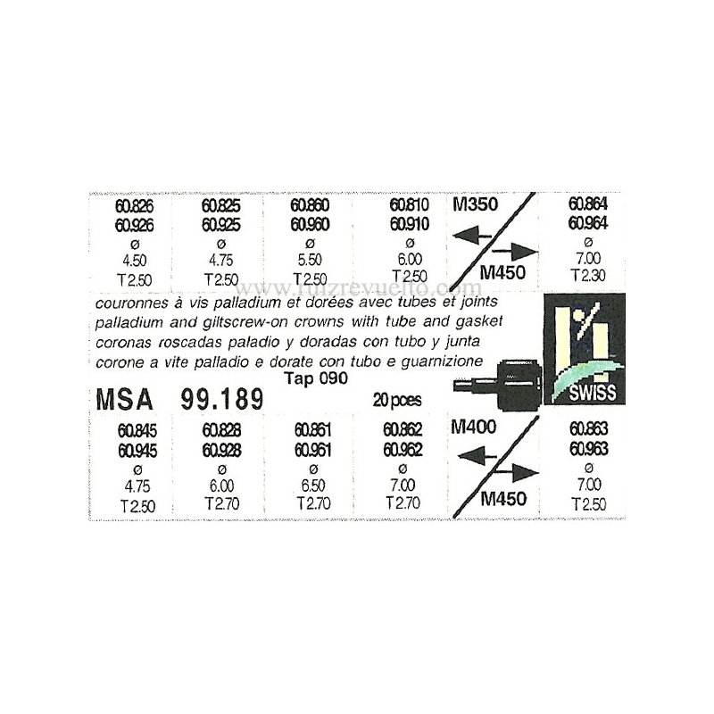 Surtido 20 coronas roscadas con tubo de caja acero y chapado
