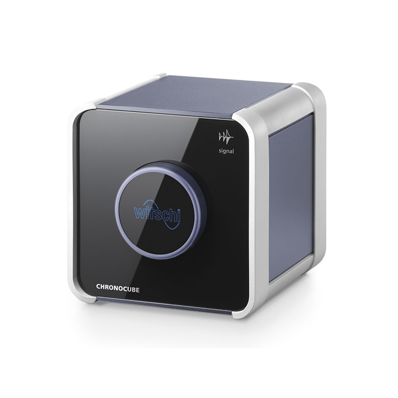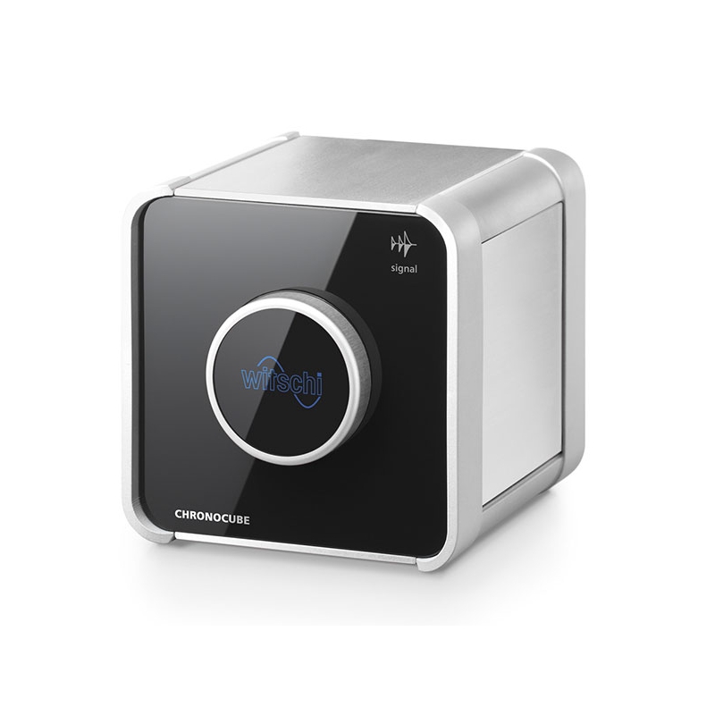 El ChronoCube es una obra maestra de la tecnología de precisión elaborado combinado con un fácil manejo. Sencillo y elegante, este pequeño instrumento de medición prueba el ratio de variación, amplitud y error de ritmo de los relojes mecánicos en cinco posiciones de medición.