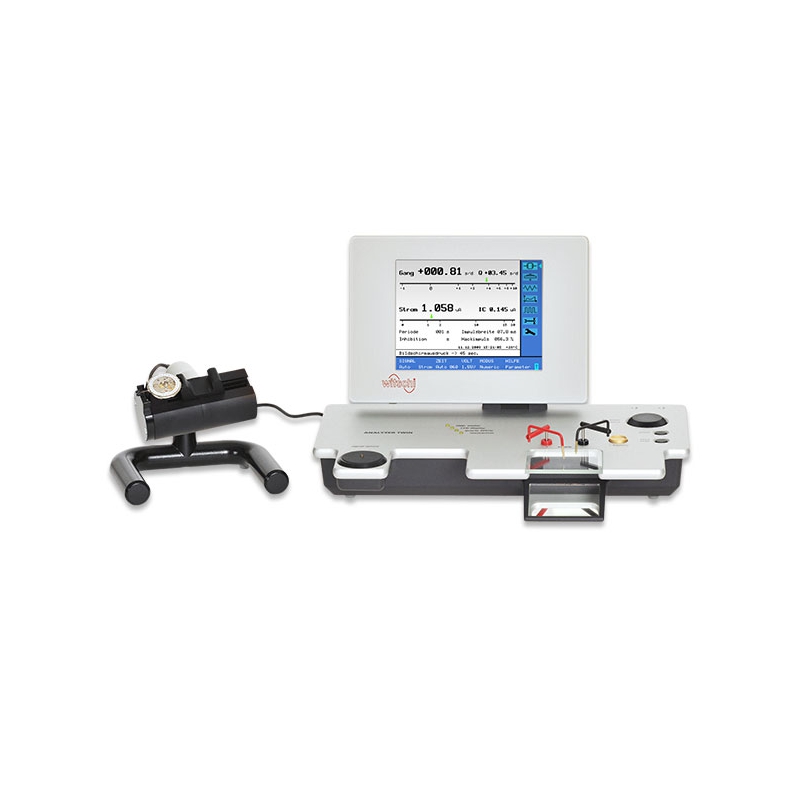 Las opciones adicionales de ajuste de la unidad de combinación Analizador Twin facilitan la medición de relojes especiales. Debido a que puede probar y medir tanto los relojes mecánicos como de cuarzo, puede ahorrar espacio en su mesa de trabajo. La pantalla a color de alta resolución hace del Analyzer Twin un dispositivo de alta calidad perfecta para los servicios de reparación, los laboratorios y los puntos de venta de relojes.