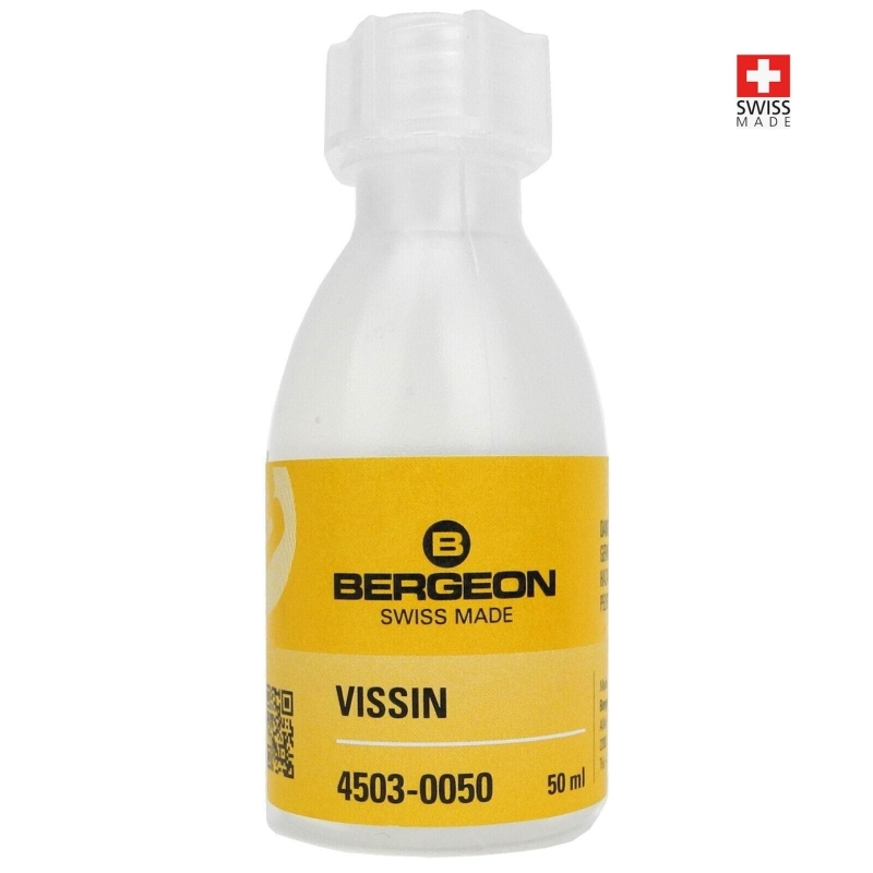 Instrucciones de uso: poner la platina o el puente en un recipiente y cubrir con Vissin. Ponerlo a cocer, poco a poco sobre una llama pequeña hasta que aparezca una pequeña sombra negra sobre el sitio donde está el tornillo roto. Enjuagar con agua corriente, y limpiar con bencina.