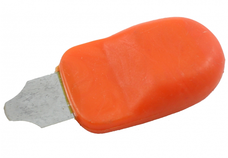 Abrecajas de reloj con punta de navaja. Mango naranja. Fácil de manejar, ideal para principiantes.